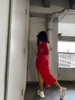 Glamorous Care Poppy Red High Neck Side Split Backless Midi Dress