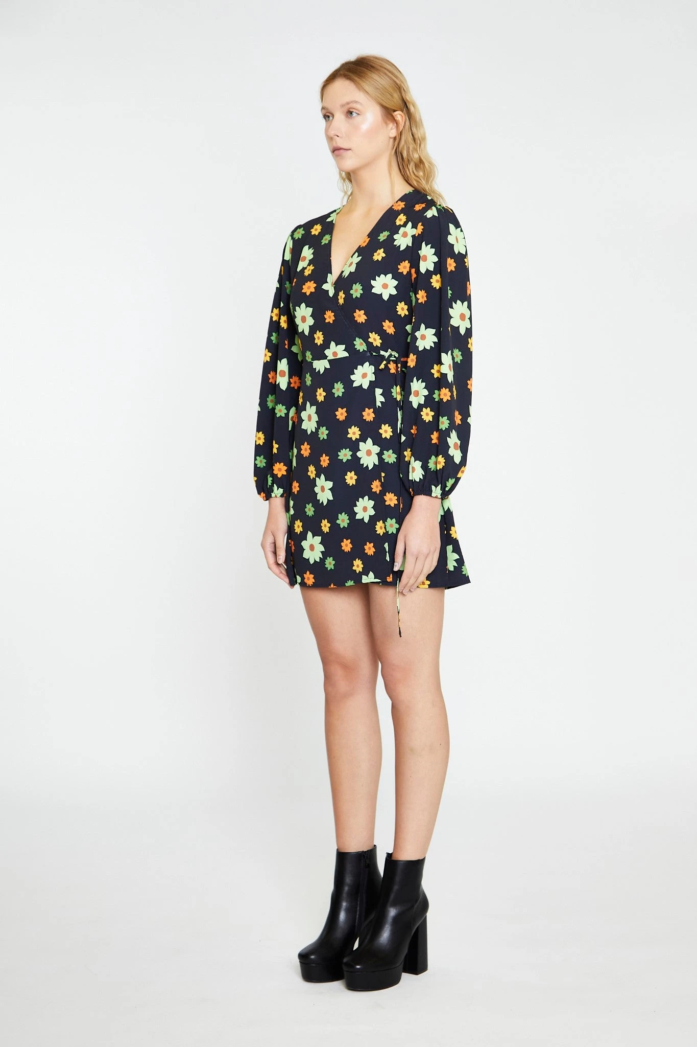 Glamorous Womens Black-Green Flower V-Neck Wrap Mini-Dress. We are loving this super cute green flower print! Featuring a RV-Neck fit and a wrap front, you wont regret adding this super fun flattering piece to your wardrobe. This style is a Glamorous favourite as it is super versatile and easy to wear, whatever the occasion.