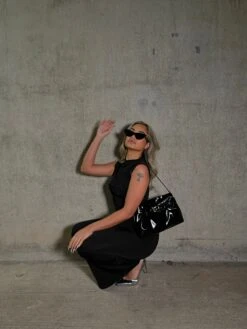 Glamorous Studio Womens Black Ruched Bodycon Midaxi-Dress. Maximize your style with this black maxi dress. With a figure-hugging fit and high neckline, this sleeveless dress elevates your look. The ruched style adds a touch of playful charm. Perfect for any occasion.