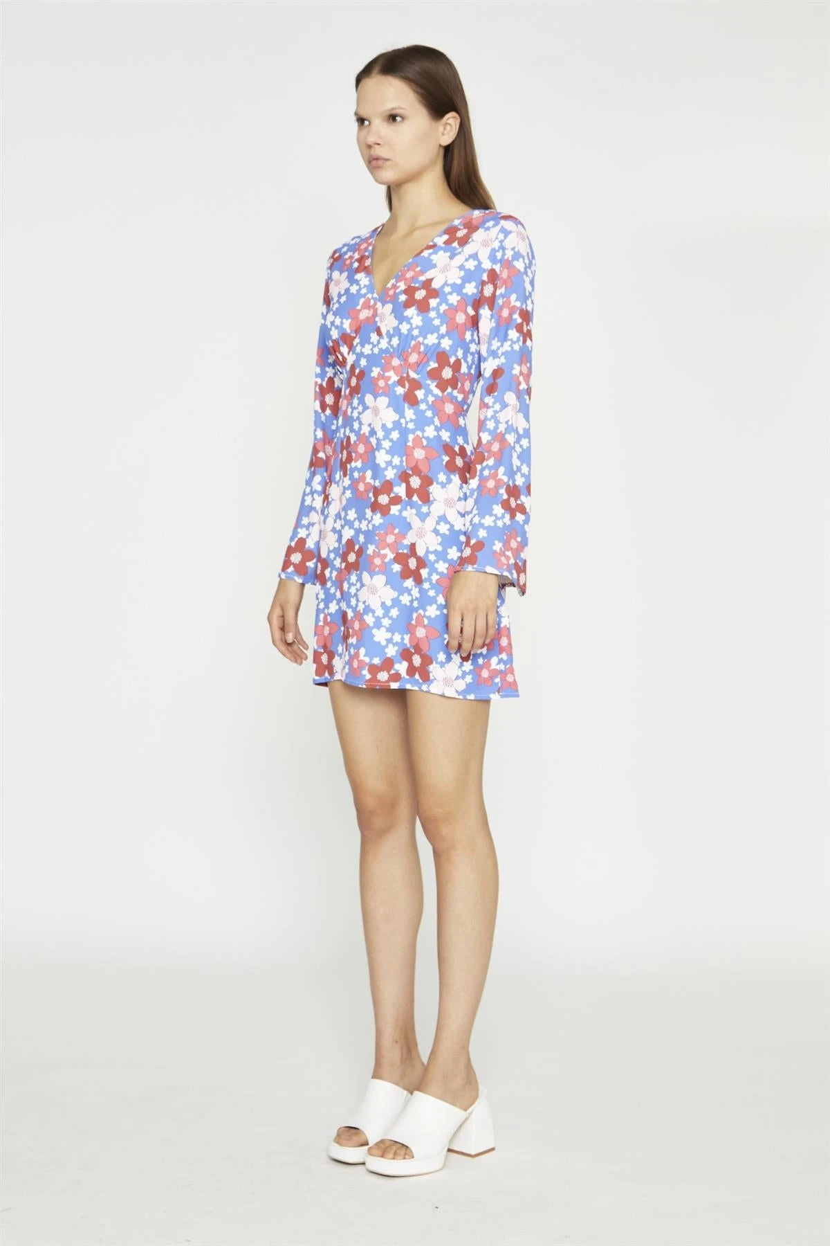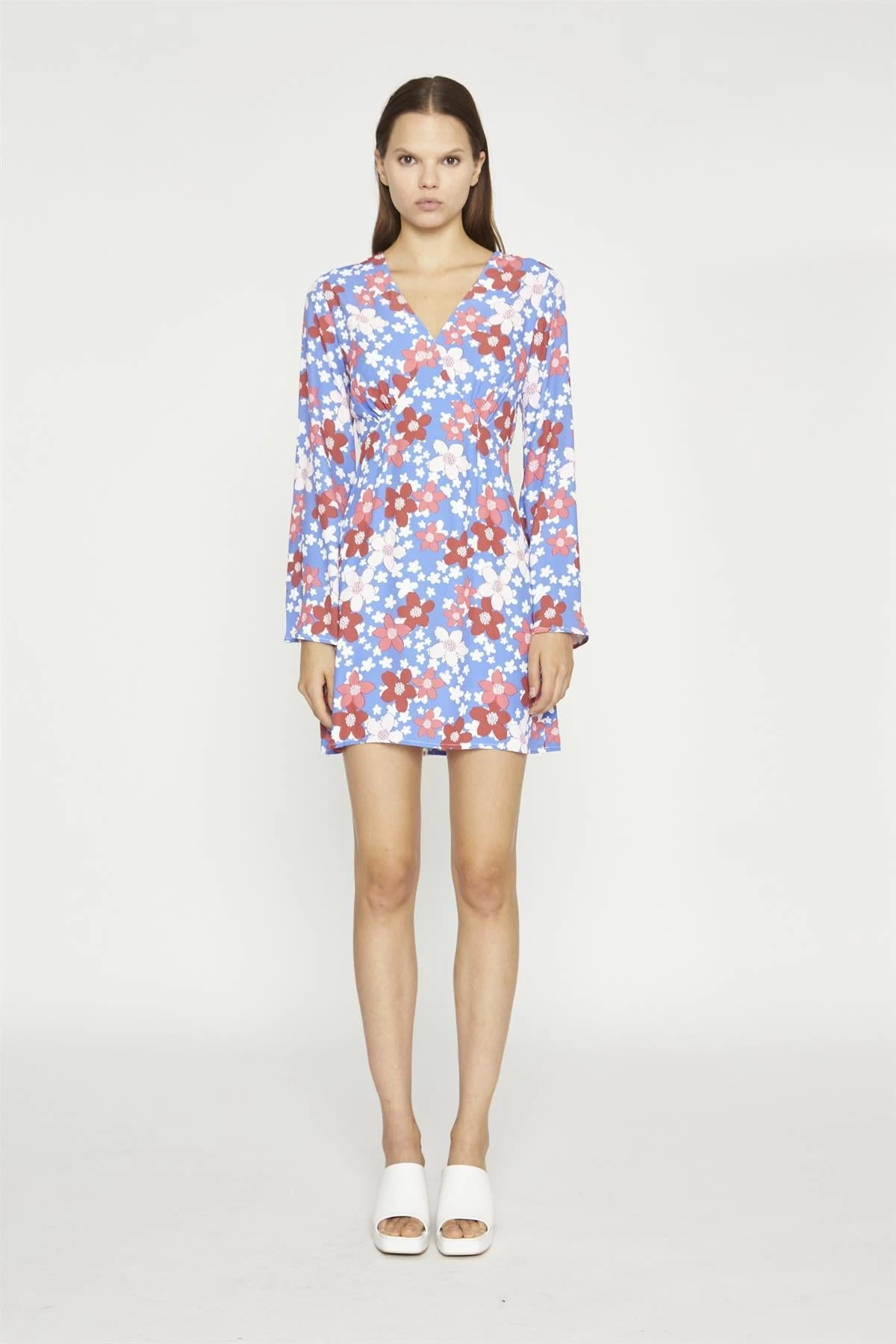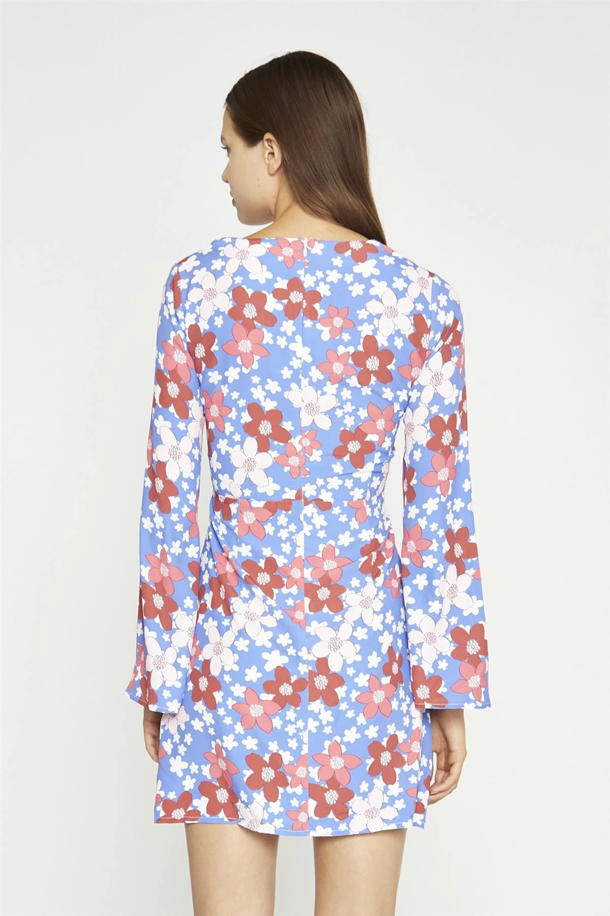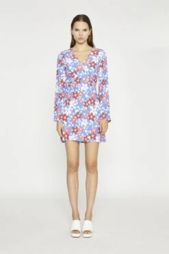 Glamorous Women’s Blue-Red Flower Fluted Sleeve Mini-Dress. This fun and flirty mini dress is perfect for any occasion. The v-neck design with gathered bust detail adds a touch of elegance, while the long fluted sleeves give it a unique, eye-catching look. The mini length keeps things playful and youthful. The blue and red floral print is bold and vibrant, adding a pop of colour to your wardrobe. Pair it with sandals for a casual daytime look, or dress it up with heels for a night out. This versatile piece is sure to become a new favourite in your closet. Comfortable and stylish – what more could you ask for?