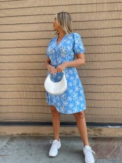 Glamorous Womens Blue Scribble-Daisy Lace-Up Front Mini-Dress. This fashion forward Dress will have you turning heads wherever you go. Featuring a lace-up corset waist design, and flattering V-neckline and puff sleeves, we love this statement piece here at Glamorous. Style with high knee boots for the daytimes and heels for the evening!