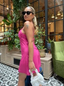 Glamorous Care Women’s Bright-Pink Gathered-Bust Mini-Dress. Dare to stand out with the Bright-Pink Gathered-Bust Mini-Dress! Our unique and flattering design, featuring a gathered bust and criss-cross back strap detailing, will surely turn heads. Plus, with adjustable spaghetti straps and a mini length, this dress is perfect for any occasion. But that’s not all – you can also feel good about your fashion choices with our Glamorous Care Sustainable Range. Make a statement while reducing your carbon footprint!