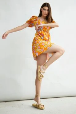 Glamorous Collection Tan Bright Floral Empire Line Cut Out Dress.  Add a pop of colour to your wardrobe with this fresh bright tan floral print mini dress. Featuring an empire line fit, cut out details at the side and scalloped trim, we love this piece here at Glamorous. Pair with sandals for a effortlessly chic look.