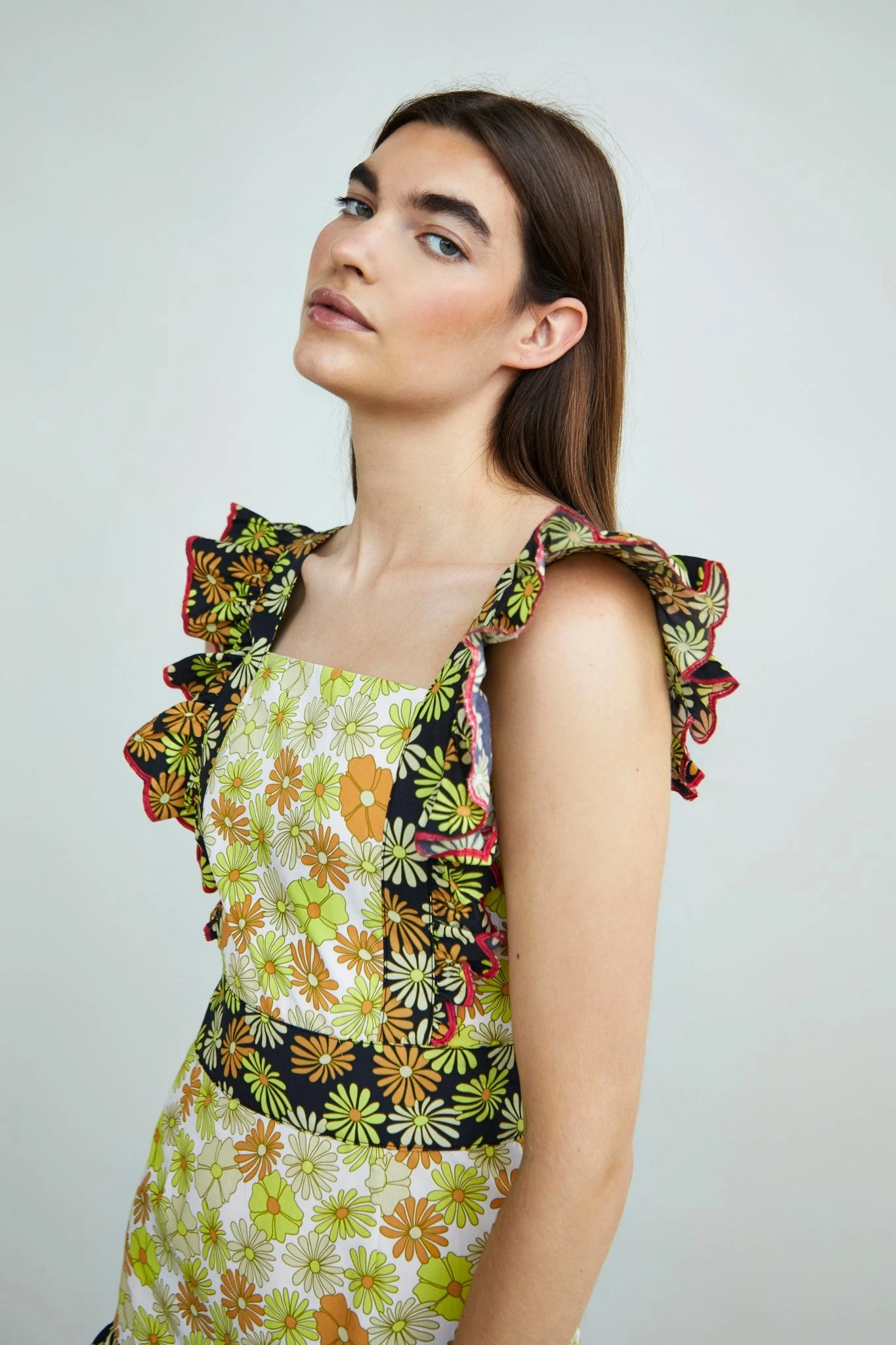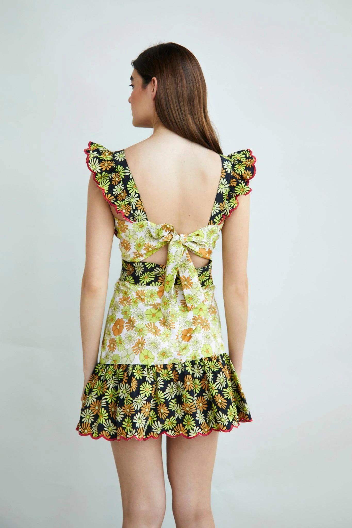 Glamorous Collection Retro Floral Mix Print Ruffle Mini Dress. Go bold with this super flattering mixed print mini dress. Featuring ruffle straps, a gathered skirt and Tie Back detail. Pair with some chucky platform heels for a effortlessly chic look.