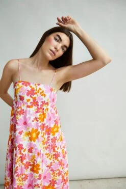 Glamorous Collection Pink Bright Floral Strappy Empire Line Midi Dress. Stylish and chic, we cant get enough of this new season floral print. This super flattering midi dress features an empire line fit, gathered tiers and strappy tie back details. Looks fab paired with some cute heeled sandals for an ultimate stylish look!