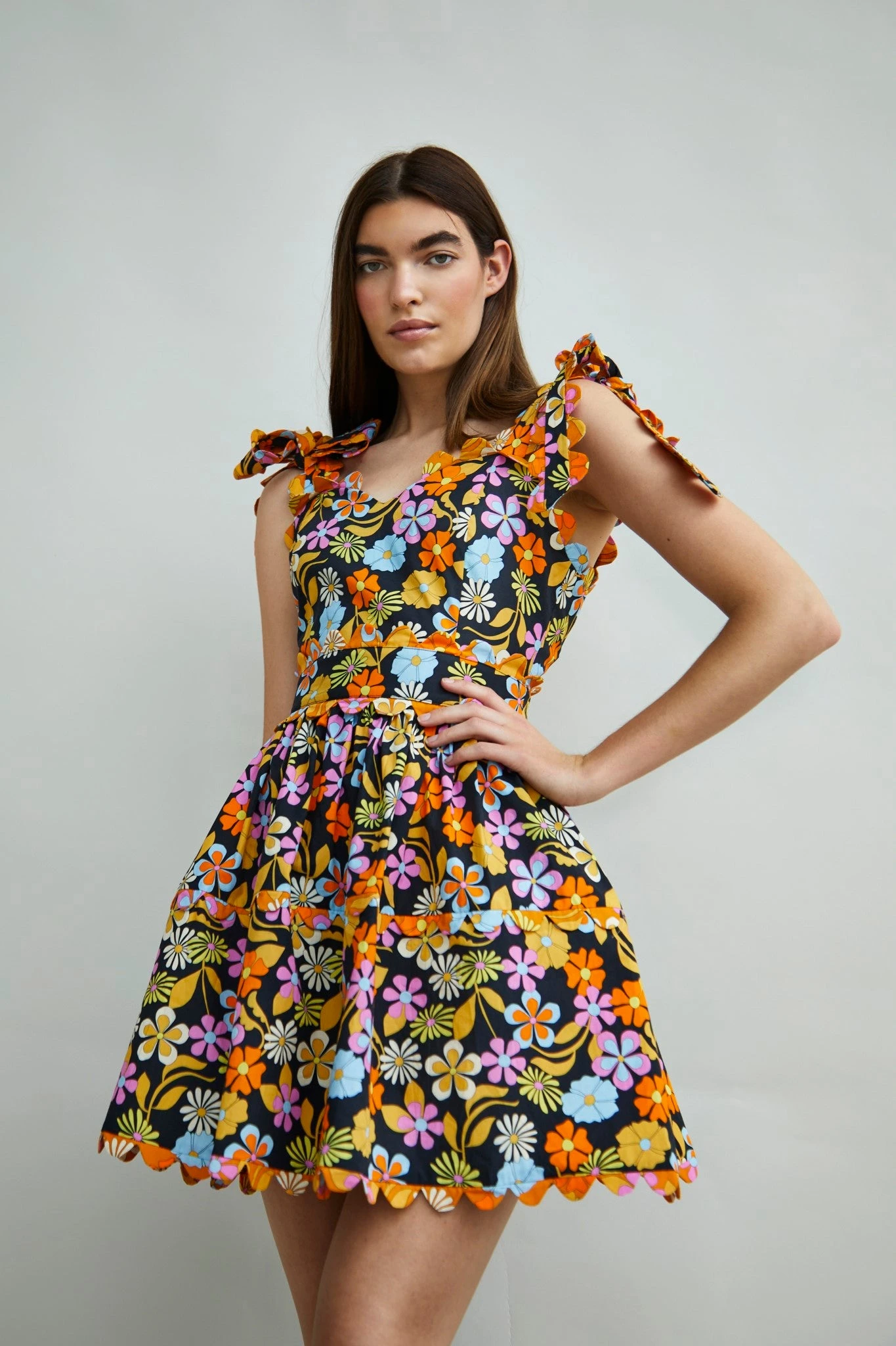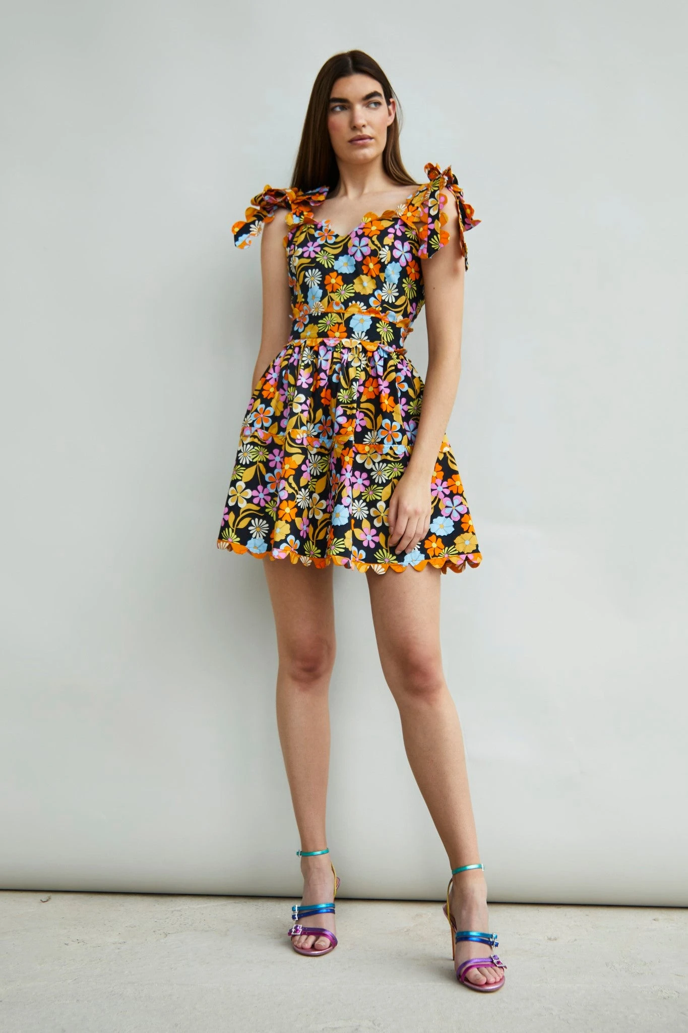 Glamorous Collection Bright Floral Mix Tie Strap Mini Dress With Contrast Trim. Opt for bright florals with this flattering mini dress. Featuring tie straps, sweetheart neckline and contrast trim details, this piece will have heads turning. Pair with platform sandals for an effortless daytime luxe look.