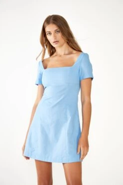 Glamorous Womens Cornflower Blue Square Neck Mini Dress. Opt for an on trend mini style with this flattering piece. This super flattering dress features a flattering style and and square neck. Style with high knee boots for the daytimes and heels for the evening!