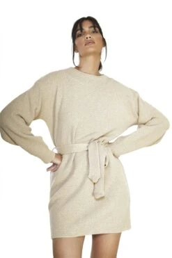 Glamorous Women’s Ecru Jumper Mini-Dress. Slip into this cozy and chic jumper dress for a relaxed yet stylish look. The crew neck and long sleeves provide a classic, comfortable fit, while the waist belt adds a touch of definition to your silhouette. Crafted from a soft, knitted fabric, this mini-length dress is perfect for casual days or laid-back evenings. Whether you pair it with sneakers for a laid-back vibe or dress it up with heeled boots, this versatile piece is a wardrobe essential that will have you feeling confident and comfortable all day long.