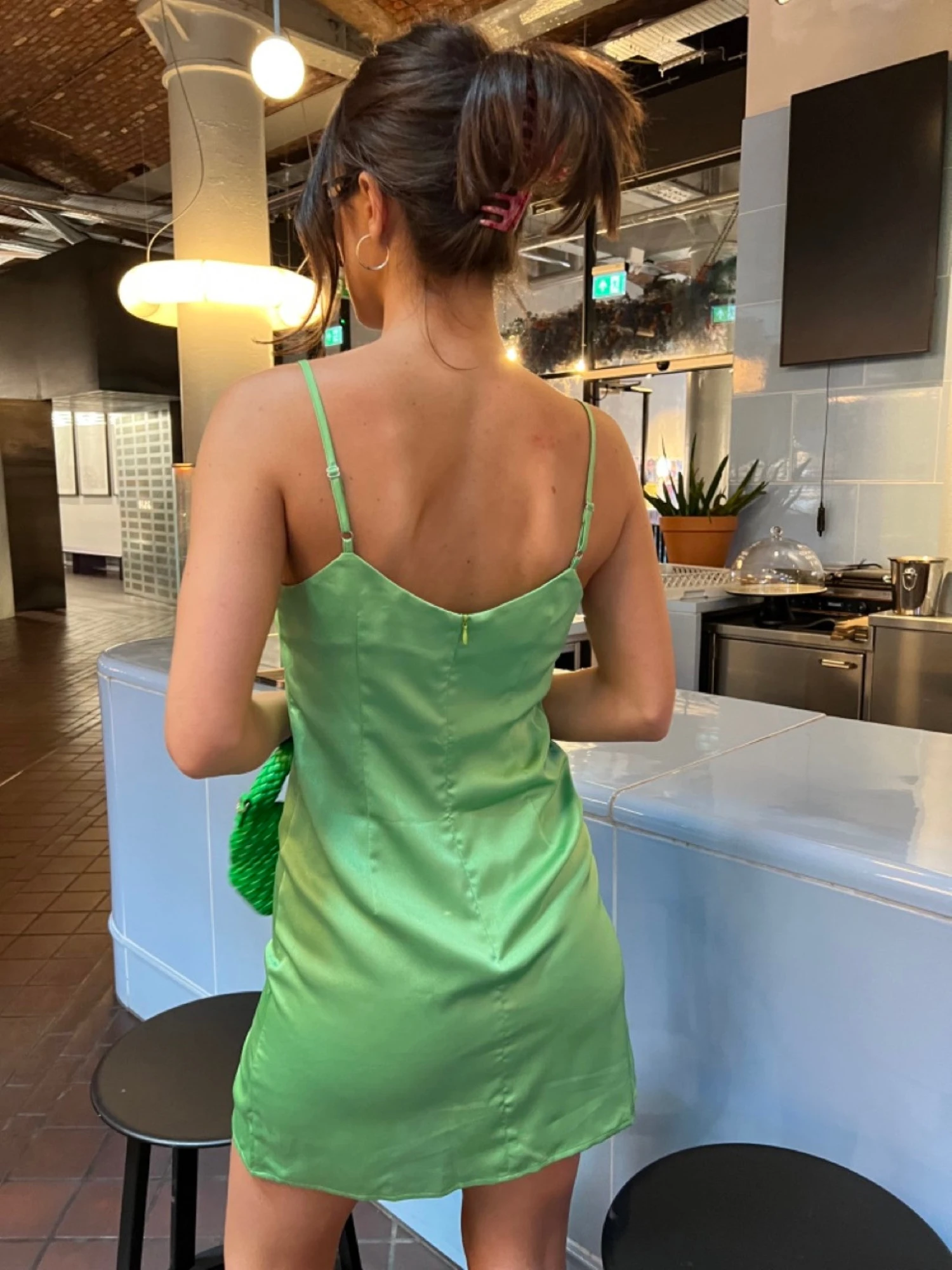 Glamorous Womens Green Satin Split Front Mini-Dress. Add a pop of colour to your wardrobe with this gorgeous green Satin mini dress. Featuring a V-neckline with split front detail, this piece is perfect for drinks with the girls or a date night. Looks great teamed with chunky boots or with your favourite heels for a more dressed up style.