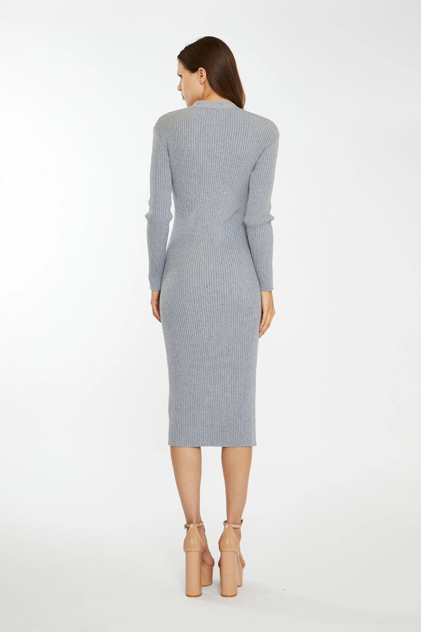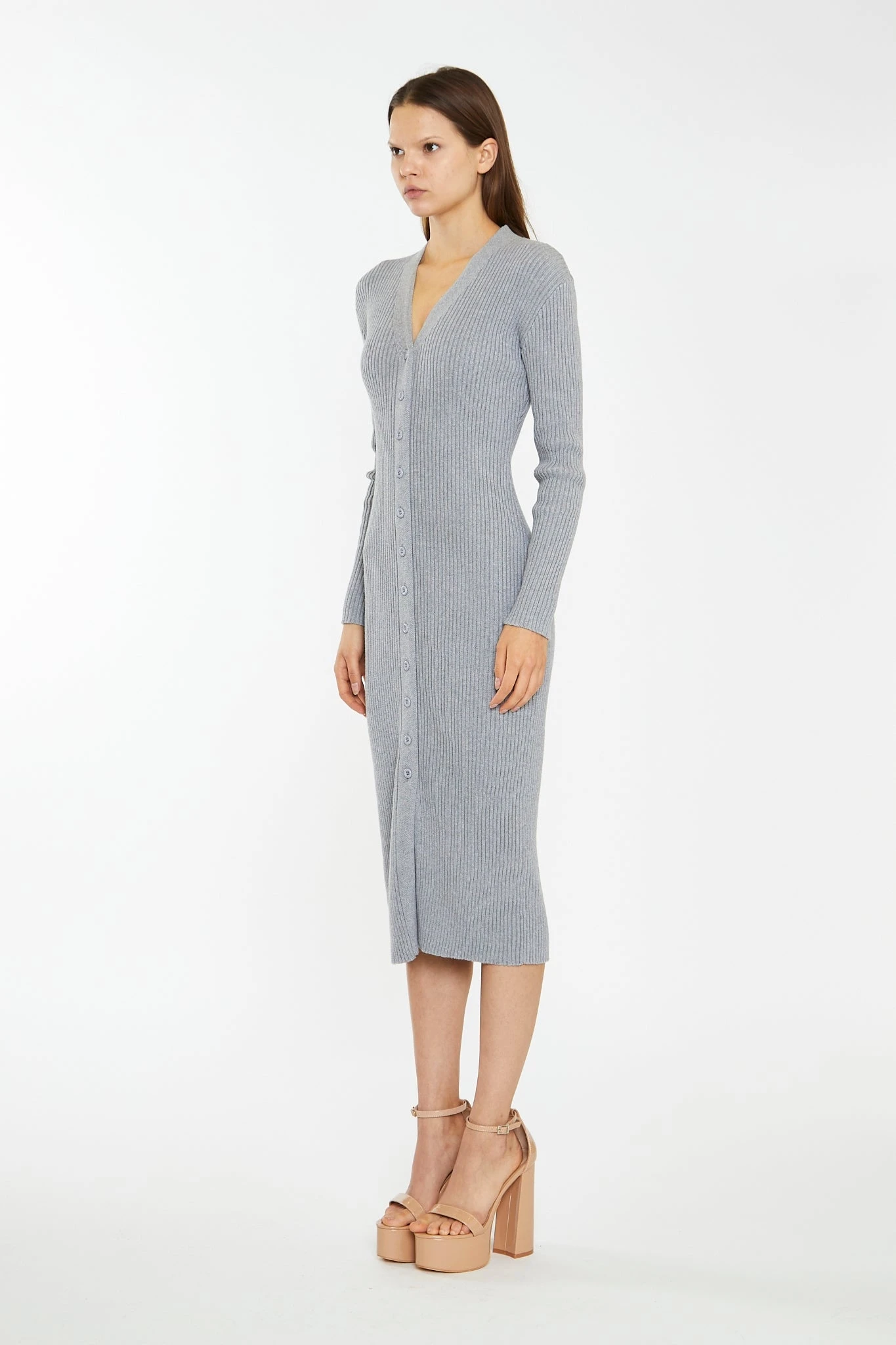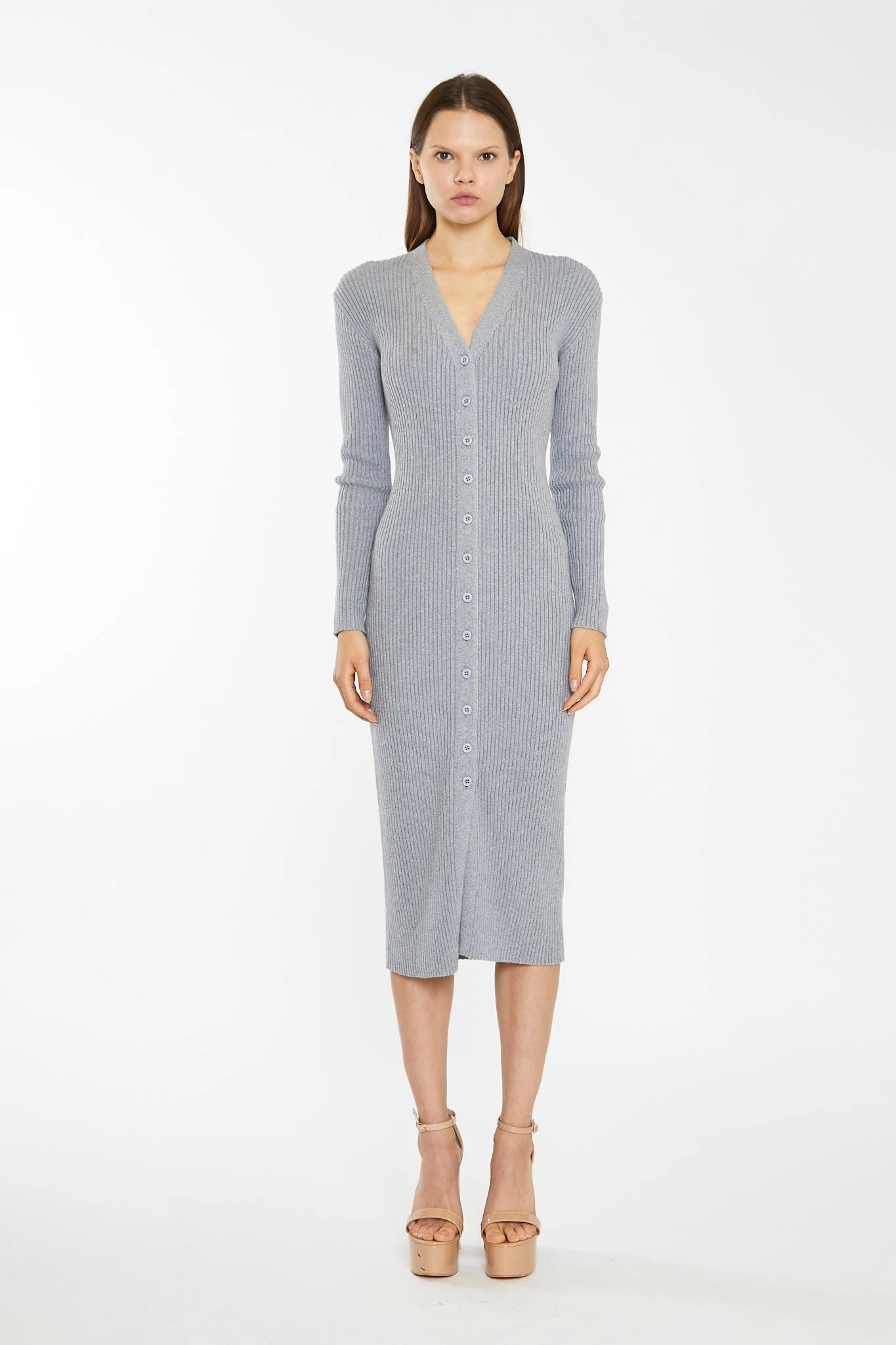 Glamorous Womens Grey-Marl Button-Down Knitted Midi-Dress. This midi dress is perfect for your wardrobe this season! Featuring long sleeves, V neckline in a skinny fit, we love this piece here at Glamorous. Dress this gorgeous piece up or down with trainers or heels, its a must have for your season wardrobe.
