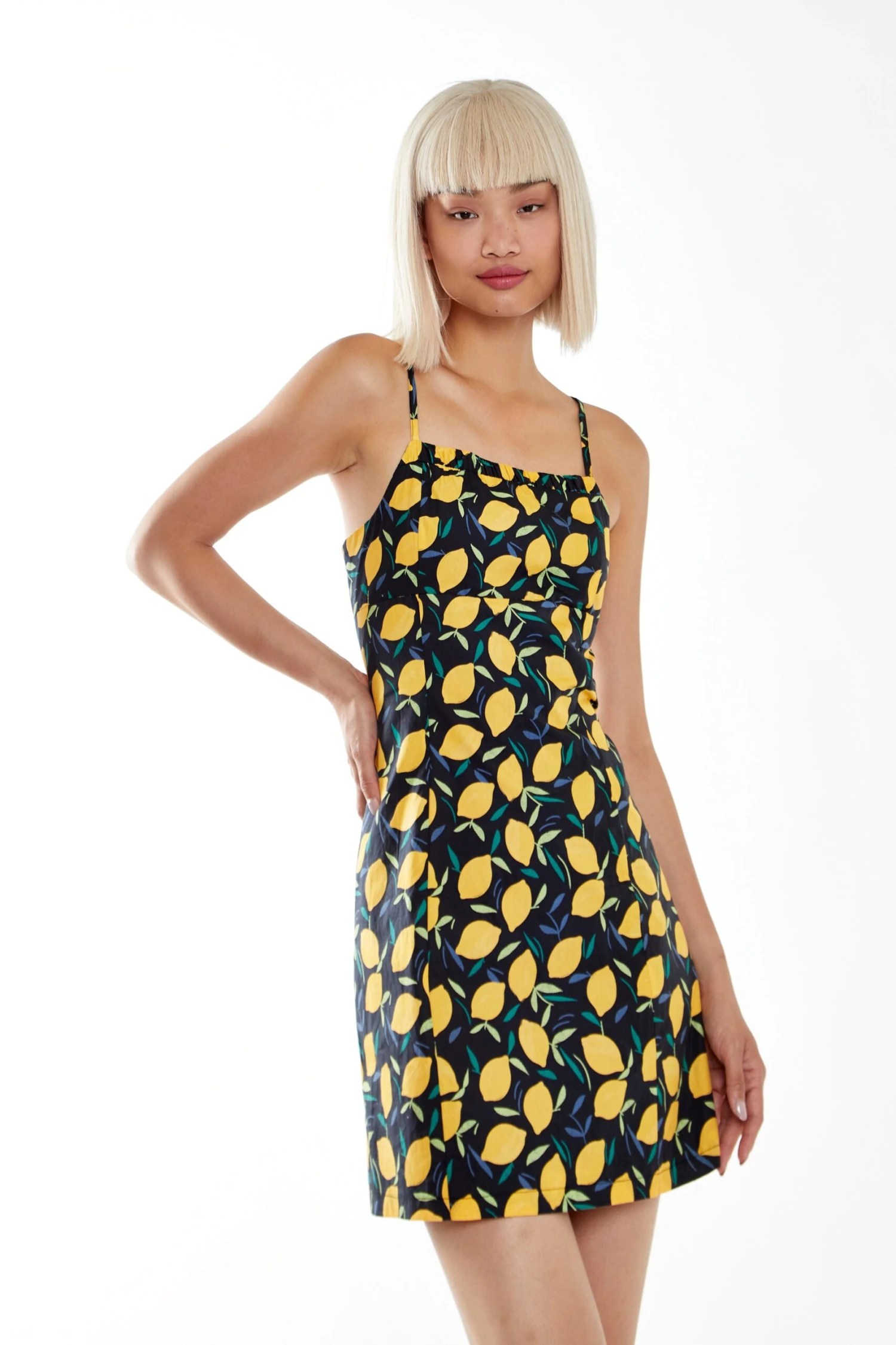 Glamorous Lemon Print Strappy Fitted Mini Dress