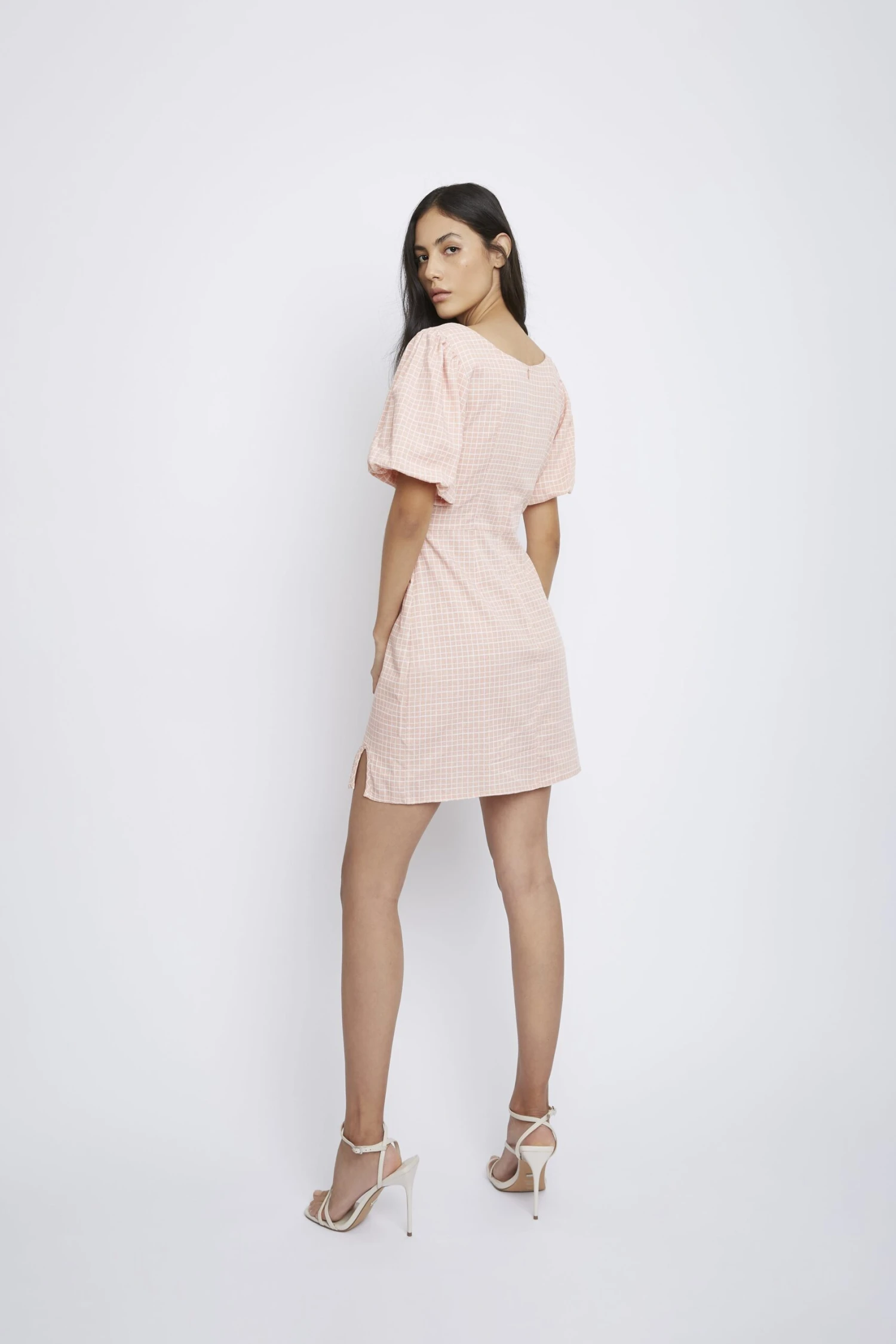 Glamorous Womens Peach grid Dress is a must have this season. We love this fit with exaggerated sleeves and mini length vibes, this is the perfect date night look!