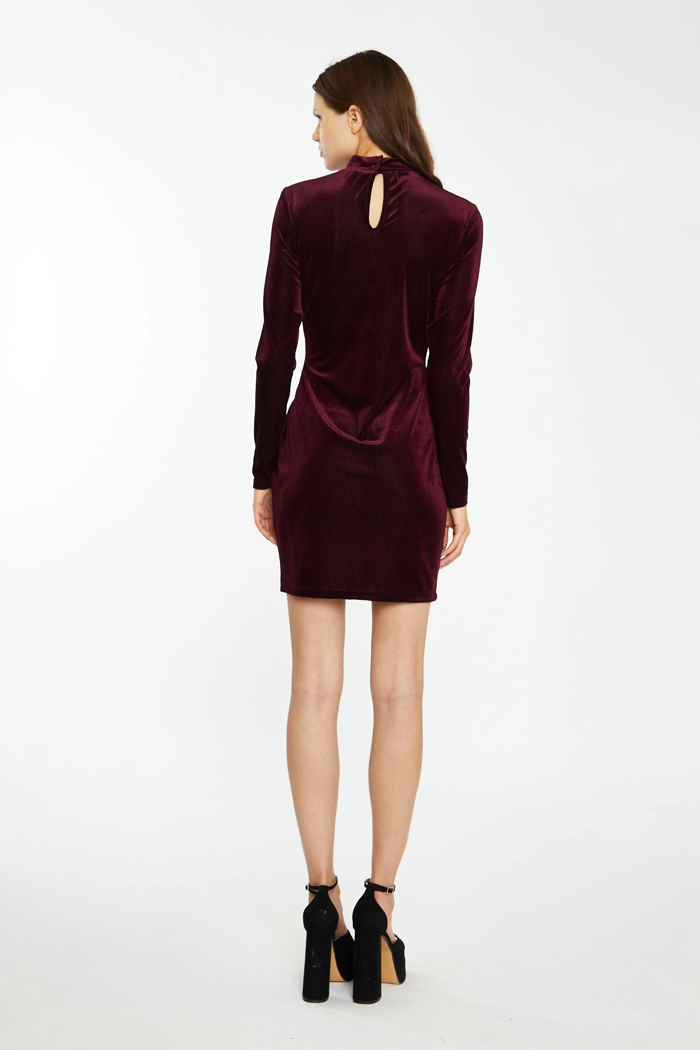 Glamorous Womens Port-Red Velvet-Rib High-Neck Side-Split Mini-Dress. Timeless and super versatile, this fitted mini dress will always look effortless and elegant. Featuring a high neckline, long sleeves and side split detail in a luxe rib velvet finish, this piece will be your go-to for every occasion. Style with a pair of heels for a statement making evening look.