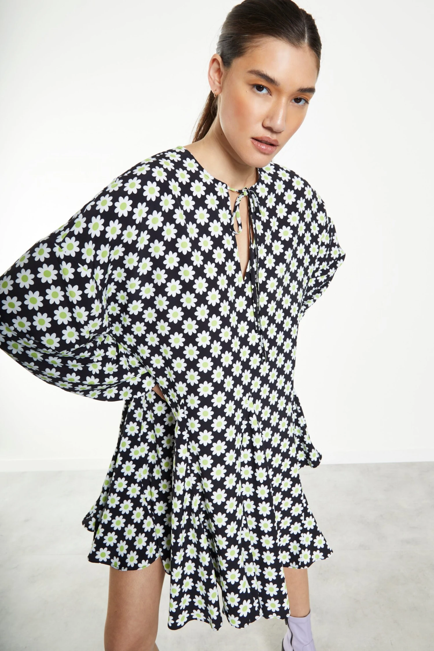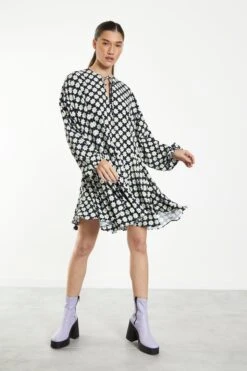 Glamorous Sixties Flower Long Sleeve Oversized Mini Dress. This mini dress will have you feeling and looking your best. Featuring an oversized fit and long sleeves, we love this piece here at Glamorous Pair with boots for the daytime and heels for the evening!