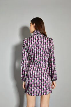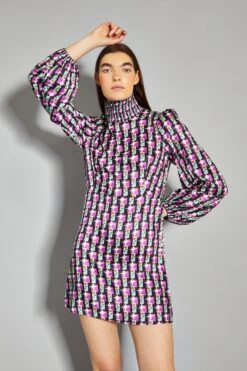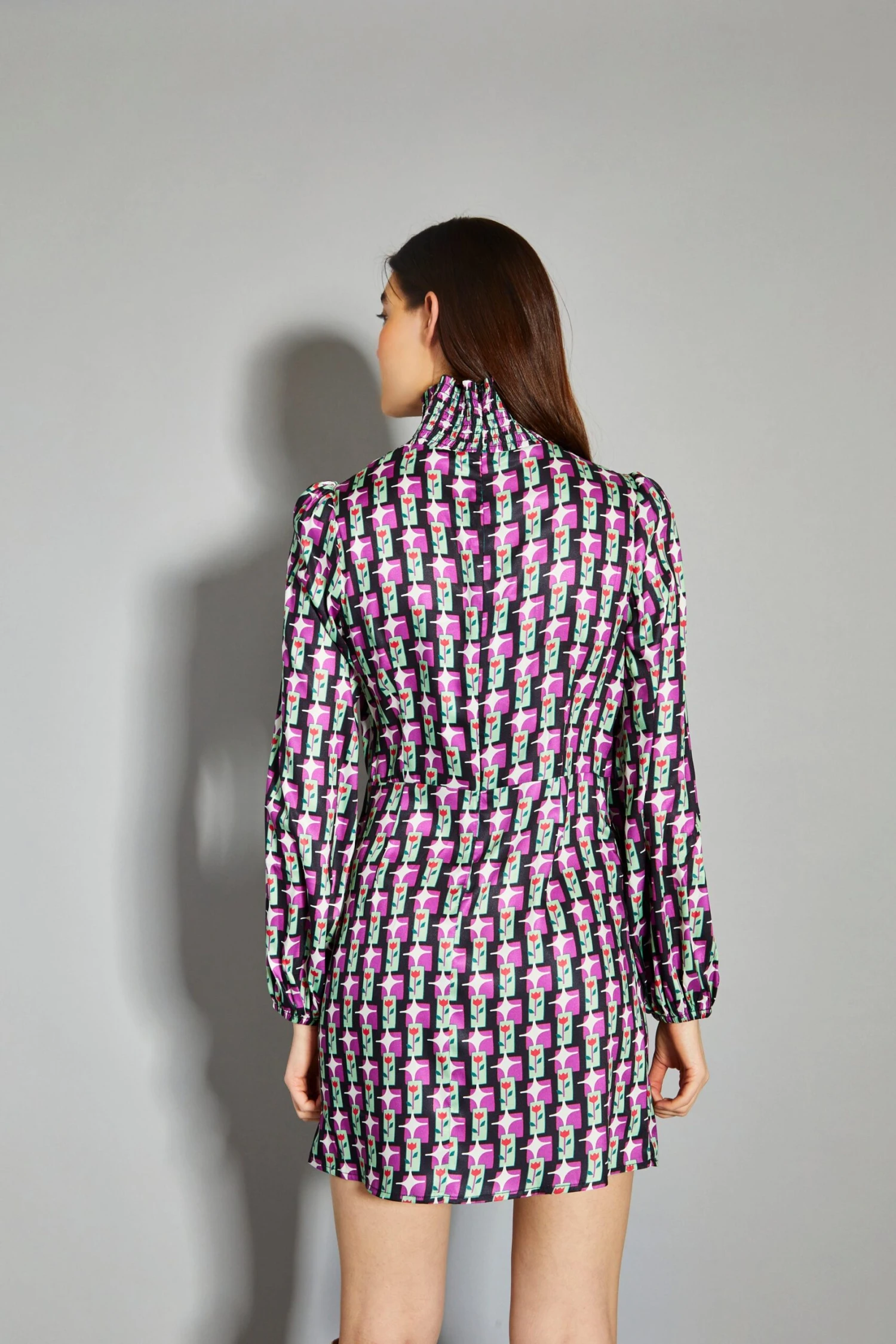 Glamorous Tulip Multi Geo Print High Neck Mini Dress. This show stopping piece is a must have for your wardrobe this season. Featuring a high neckline and long sleeves in a gorgeous print, this mini dress wont fail to impress! Add some knee high boots for the ultimate stylish Winter look.