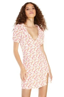 Glamorous Womens  Watercolour Ditsy V- Neck Side Split Mini Dress. This dress is a dream! We love this piece here at Glamorous as it gives us all fashion forward feels. Featuring a V- Neck fit and side split, you wont regret adding this piece to your wardrobe. This stunning mini dress will look great on you! Pair with some chunky boots for the ultimate spring night this season.