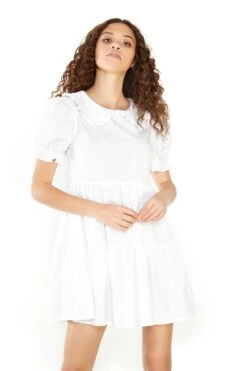 Glamorous Womens White Collar Puff Shoulder Mini Dress. Opt for a the perfect piece with this flattering mini dress. This super flattering dress features puff shoulders and a collar detail. Style with trainers for the daytimes and heels for the evening!